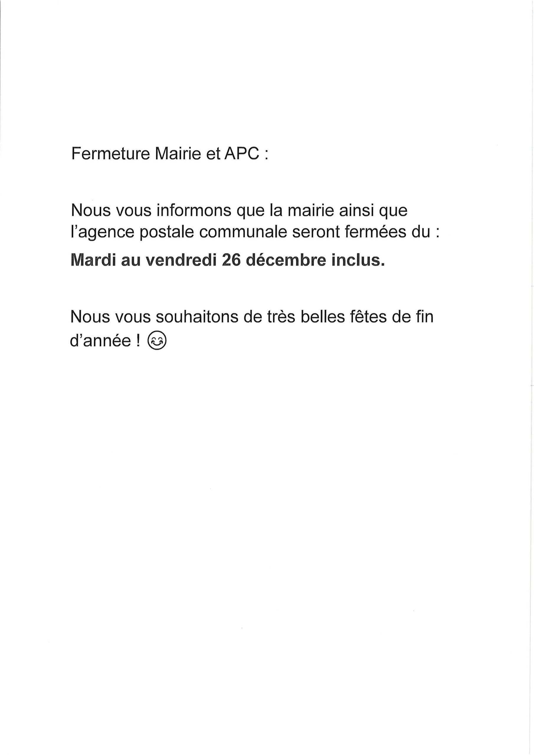 Fermeture mairie et APC